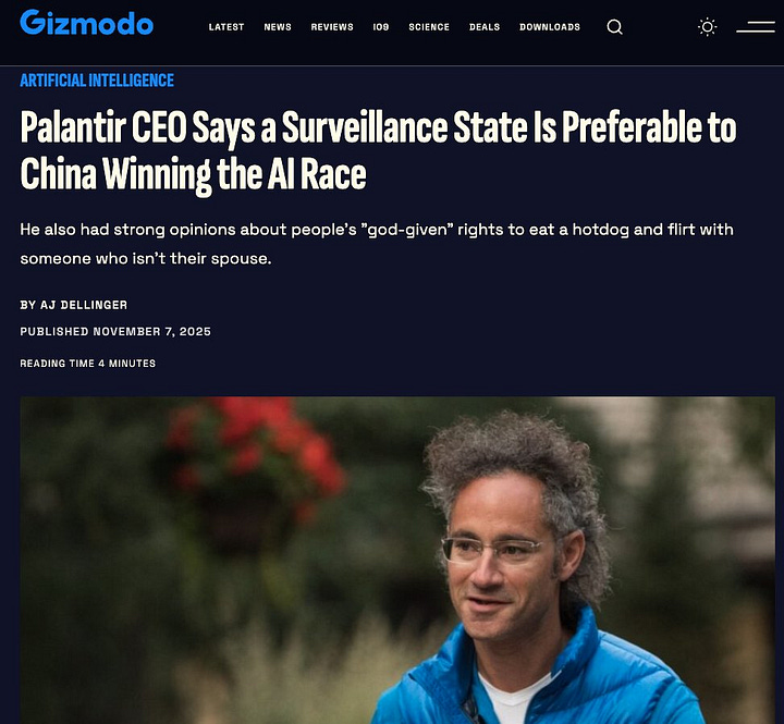 The CEO of Palantir Surveillance-Murder Corporation has spent his years in the public eye trying to craft a Free Thinking Progressive persona with a philosophical bent and an impoverished upbringing. Perhaps that was all true at one point in time, but Karp unmasked himself as just another Billionaire Piece Of Shit working to enslave everyday people through Artificial Intelligence along with all the others that enabled the 2024 Trump takeover of the American government. His visibility has been at an all-time high, and we are simply loving the combination of hilarious outfits with insane quotes and his total inability to maintain any facade he used to have. Just like all the rest, he’s a Silicon Valley Loser who can’t look people in the eye, doesn’t know how to sit in chairs, and is desperate to be powerful and liked. His latest quotes include, “there is nothing wrong with being a high testosterone male” and, “If fentanyl was killing 60,000 Yale grads instead of 60,000 working class people, we’d be dropping a nuclear bomb on whoever was sending it from South America.” First of all, the fent is coming from China. Second of all, anyone decrying the treatment of high-T males is the opposite of a high-T male. This guy dresses like a Loser, talks like a Loser, and owns every piece of data that exists on every single one of us. As we’ve wondered many times, how did the biggest fucking Losers in the history of humanity get all the power? How do we get it back? Much to consider, but we’ll figure it out together.