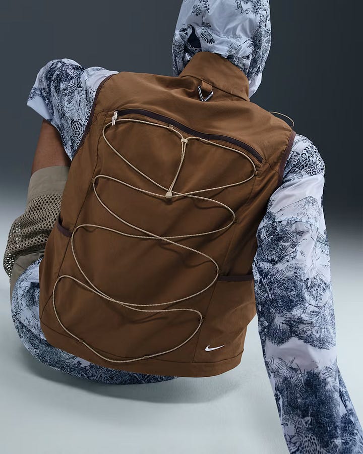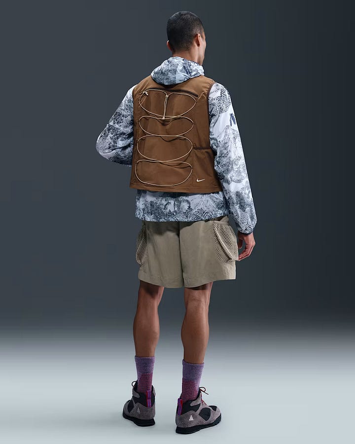 Nike first hit the trails in 1981 with the launch of Nike Hiking, introducing hard-wearing footwear imbued with Nike’s signature boundary-pushing material and technology innovation. In 1989, Nike Hiking gave way to Nike All Conditions Gear, breaking out of the hiking “box” and bringing early Gorp style to a wider audience. In the past 25+ years, they’ve consistently re-invented ACG through changing consumer (and Nike) tastes, keeping the line at the forefront of innovation and style while also maintaining a through-line that traces all the way back to Nike Hiking. What we’re trying to say is ACG is still Banging after all these years, and the hits keep coming every season. We gotta keep it real and admit that the biggest thing that drew us to this jawn was the cactus zipper-pull - we’ve long been obsessed with the icon of the American West, surrounded by cacti of all types in our Arizona youth and genuinely believing Shaq’s embarrassing “Big Cactus” era was going to deliver a ring to Phoenix. Thankfully, this vest is jam-packed with other genius features in case you’re not weirdly obsessed with Southwestern flora. We love the big open pockets on either hip, great to drop in your camera or a water bottle when you’re out on a mission. It can function as a backpack, with a zippered compartment covering the whole back and a bungee cord system on top. Bungee storage at the shoulders and standard zip pockets at the front round out the endless storage options. This thing is pure style that hides incredible innovation - the ACG experience on full display.