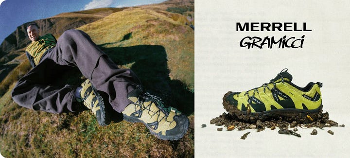 If we could only pick two brands to wear for the rest of our days, they would be Nike and Palace. If we could pick two more, they’d be Merrell and Gramicci. Lucky for us, both duos are linking up for greatness in 2025. We’ll likely go Really Long on Palace and Nike at some point, but this week’s about the revolutionized Moab 2 Siren from Merrell and Gramicci. Two of the longest-standing and Most Banging outdoor outfitters of the very crowded category, they came together on a new iteration of Merrell’s legendary Moab silhouette made for movement. They dipped into the archives to restyle the Siren on top of the tried-and-true Moab 2 midsole, bringing forth an all new design that’s perfect for the trail, the rock face, or the Street and has every ounce of Style we’ve come to expect from two all-time greats of mixing fashion and function. Each colorway is uniquely Gramicci, but we gravitate to the timeless feel of the Dark Earth jawns, looking like it could’ve been here in the 80s while maintaining the spark of modern design detailing. As we’ve noted time-and-time again, the best Garms are multi-disciplinary and able to shift vibes and missions without the need to change your outfit, and these hit every one of those notes. A top-tier pair that’ll no doubt last for years and look better after every mission. What else could we expect from two of the best?