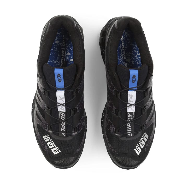 We’ve been living in the XT-4 for the past couple years. It was our first pair of Salomons and remains our favorite. Salomon produces some of the most comfortable technical footwear in the game. The magic comes from the Agile Chassis™ Skeleton combined with a dual density midsole that provides exceptional stability along with cloudlike comfort. The rugged outsole gets over any terrain and the Quicklace system makes for quick on-and-off. Australia’s Supply recently put their spin on the oft-collabed XT-4, and it’s one of the best ever produced. Mostly black with hits of blue and speckled grey makes for a clean canvas to freak the branding. No detail was spared, from flipping the Salomon logo upside down as a nod to Supply’s Down Under location to replacing “LAB” on the toeboxes with their own logo and on the lace strip, the changes are subtle but exciting for those paying attention. The overlay on the upper features subtle imagery from the Paris catacombs, a reminder that this shoe is made for the most rugged explorations. Get out there, Soldiers!