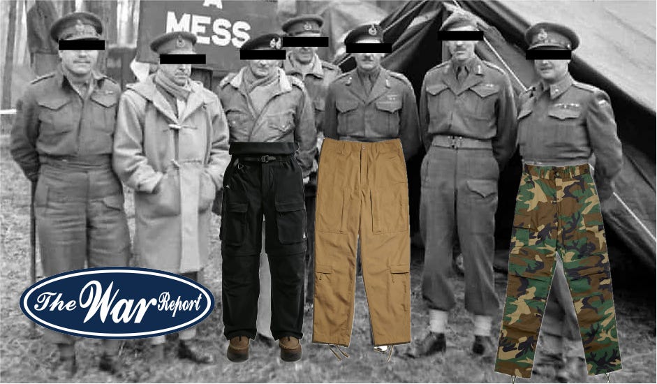 The history of cargo pants from military service pant to Certified Staple for Stunting Soldiers.